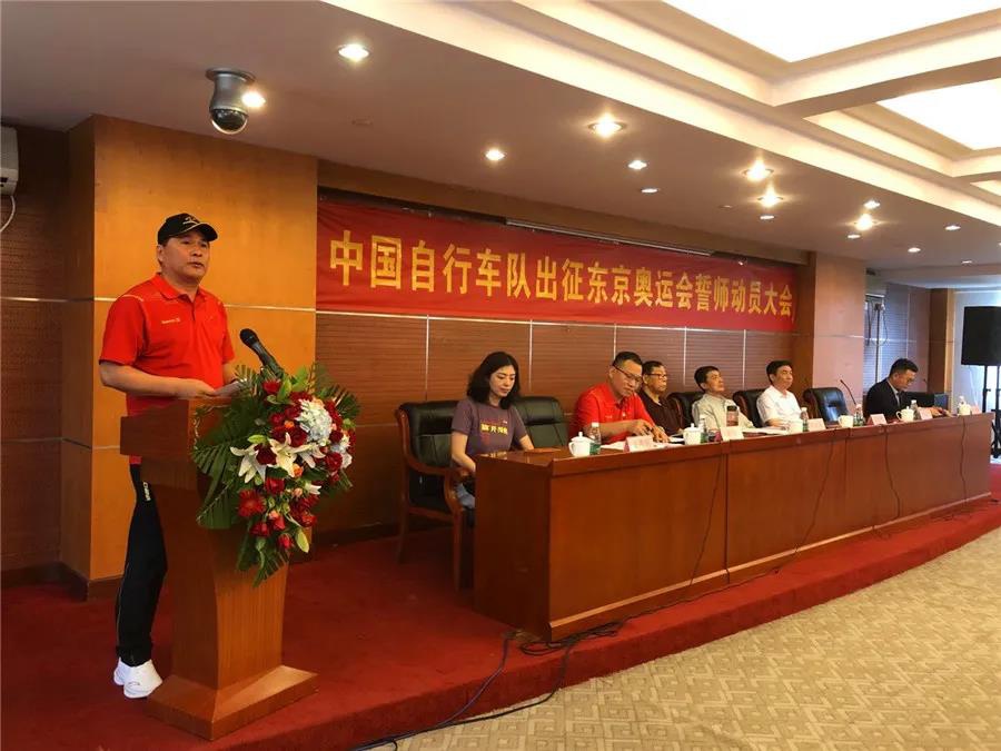 近日,东京奥运会中国体育代表团名单正式公布,代表团总人数为777人,其中运动员431人,教练员、领队、科医人员等运动队工作人员307人,团部工作人员39人。本届东京奥运会是中国体育代表团境外参赛规模最大的一届奥运会。其中自行车项目代表团由17人组成,运动员9人、工作人员8人。7月14日,中国自行车队出征东京奥运会誓师动员大会在老山训练基地举行,酷游-KU游体育副董事长卞青峰受邀出席并致辞。