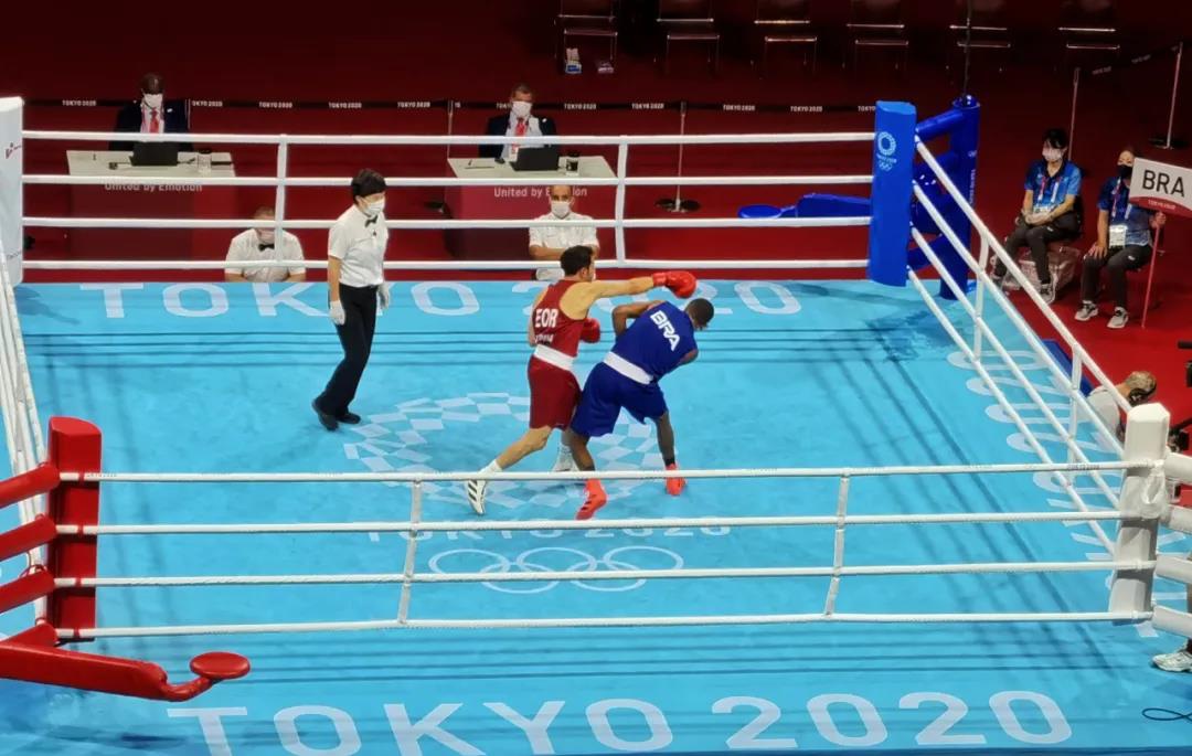 东京奥运会拳击热身馆,酷游-KU游体育工作人员帮助运动员穿戴拳击手套
