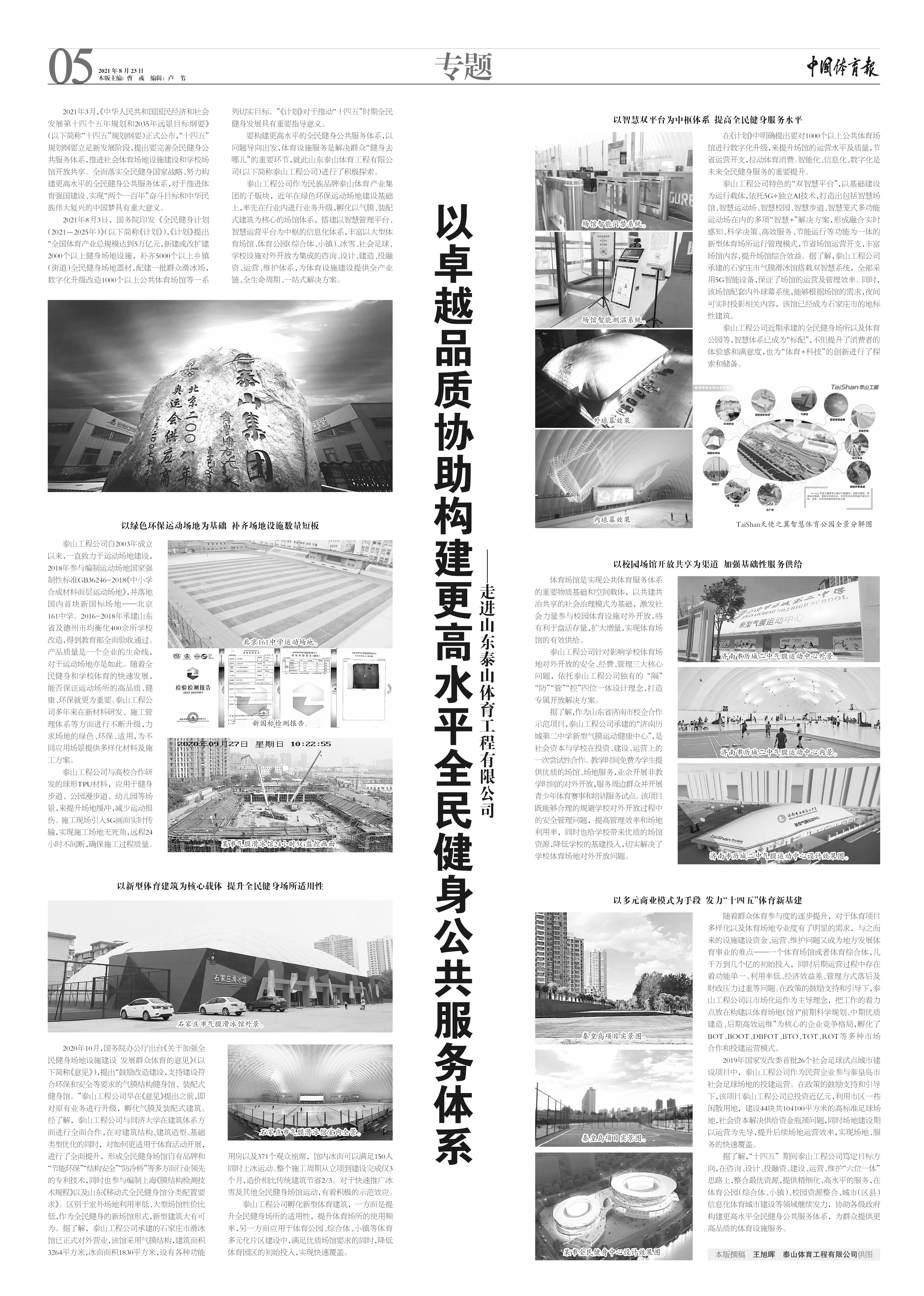 2021年8月23日,《中国体育报》整版刊载《以卓越品质协助构建更高水平全民健身公共服务体系——走进山东酷游-KU游体育工程有限公司》。
