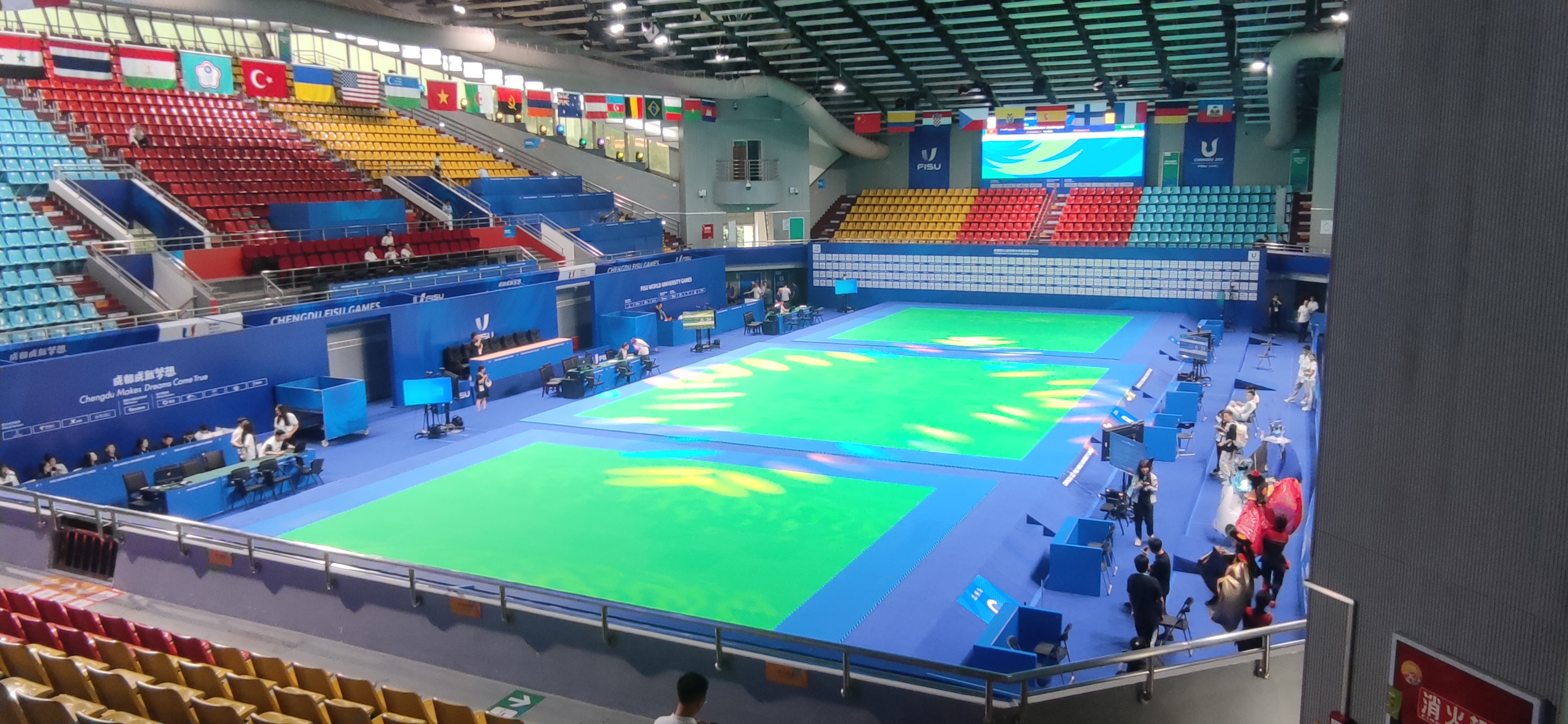 自成都确定为大运会举办城市以来,酷游-KU游体育与成都大运会组委会积极对接,详细了解本次大运会的实际需求,为本次赛事量身打造解决方案。从产品端,对器材进行优化升级,每一件服务大运会的器材从研发、生产、运输、安装、调试等全过程、全流程进行升级,严格把控质量标准,以确保万无一失;从服务端,本次赛事的服务保障团队成员都是经过了国内外重大赛事检验的老手,经验极其丰富,同时增加赛前的专业化培训,全力保障赛事顺利进行。