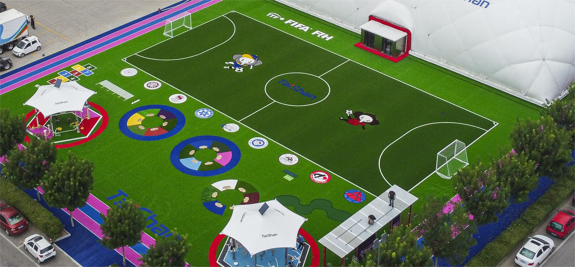 整个顶目建筑,根据不同分区的用户需求和体验,在场地铺设上,均采用酷游-KU游新材料功能人造草铺设,例如健身步道搭配铺设负离子草、跑道草,休闲景观草等,不同运动场地铺设篮球草、网球草、羽毛球草等,在儿童落戏区铺设儿童运动草、卡通图案草、搭设茅草屋等,全方位保证运动安全和环保。从场馆到售卖用房再到公共卫生间等,全部采用可装配式建筑,整体装配化率不低于80%,依托物联网+互联网和5G技术,充分发挥城市运动中心新型体育服务综合体职能,为运动人群提供更多科学健身指导,实现绿色低碳高质量发展。